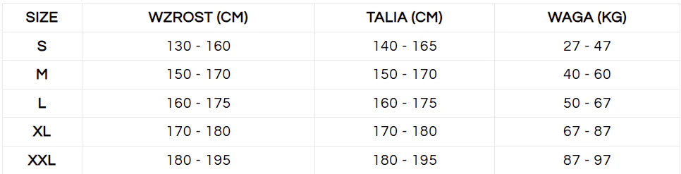 Wybierz rozmiar na podstawie obwodu talii. Jeśli go nie znasz, dobierz rozmiar według wzrostu i wagi. Wybierz rozmiar większy, jeśli masz dość duży brzuch.